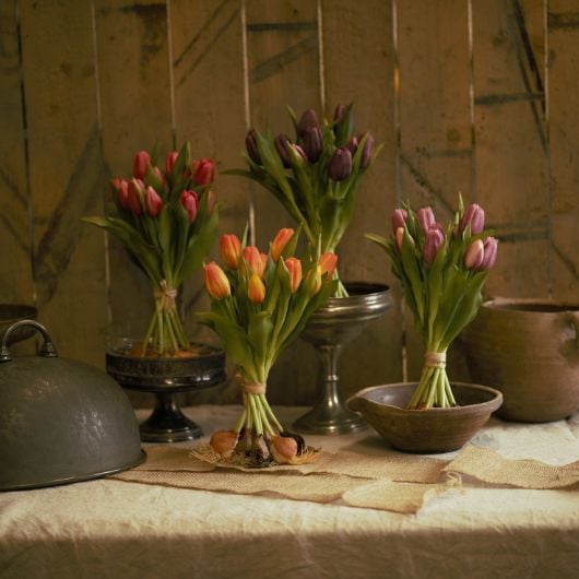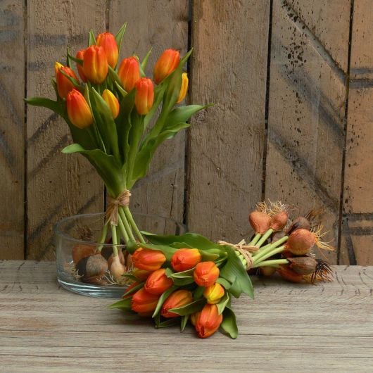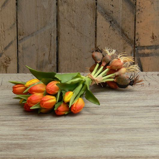 In de Nederlandse polders zie je ze vaak langs de weg staan, die tulpenboeren die hun waren nog steeds langs de weg verkopen. Als je geluk hebt, zitten de bollen er nog aan, wat je tulpen nog meer charme geeft. Deze tulpenbollen zijn “voor het leven”, wat betekent dat ze uiteindelijk veel minder belastend zijn voor ons milieu. Ze brengen nu de lente in huis, maar zullen dat volgend jaar ook weer doen. Er zitten maar liefst 12 tulpen in een schoof met dus evenveel ‘bollen’. Alles bij elkaar is de hoogte ongeveer 37 cm. Deze zijn in een gelimiteerde oplage gemaakt en wil je echt niet missen!!!