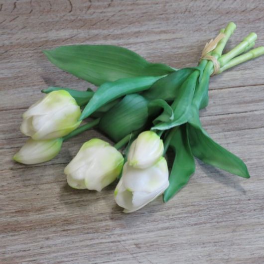 Deze tulpen zijn prachtig en je kunt er eindeloos mee decoreren. Ze hebben een prachtig kleurverloop op de bloem en mooie nerven in de bladeren. Ze zijn ongeveer 32 cm en er zitten er 5 in een bos.